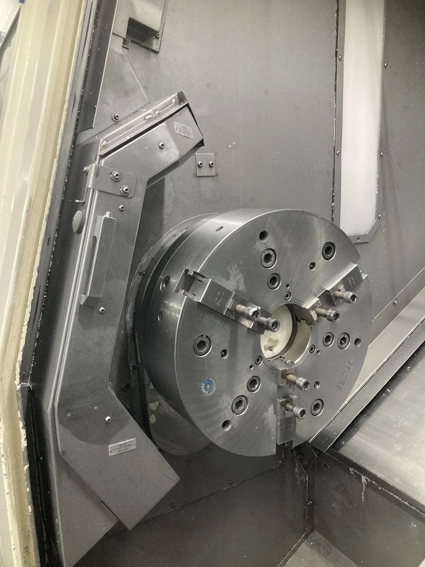 Robuuste Hyundai-Wia CNC draaimachine type HD3100LY. Stevige CNC draaimachine van Hyundai-Wia met 305 mm (12 inch) hydraulische drieklauwplaat met 102 mm stafcapaciteit. Dee machine is eveneens uitgevoerd met aangedreven gereedschappen (BMT-65 opname) en een Y-as. De maximale draailengte bedraagt 1.280 mm. De Y-as verplaatsing bedraagt 120 mm (+60, -60 mm). Het gaat hier om een blokgeleide machine in alle assen. De Y-as betreft een zogenaamde wigconstructie, wat garant staat voor meer stabiliteit.