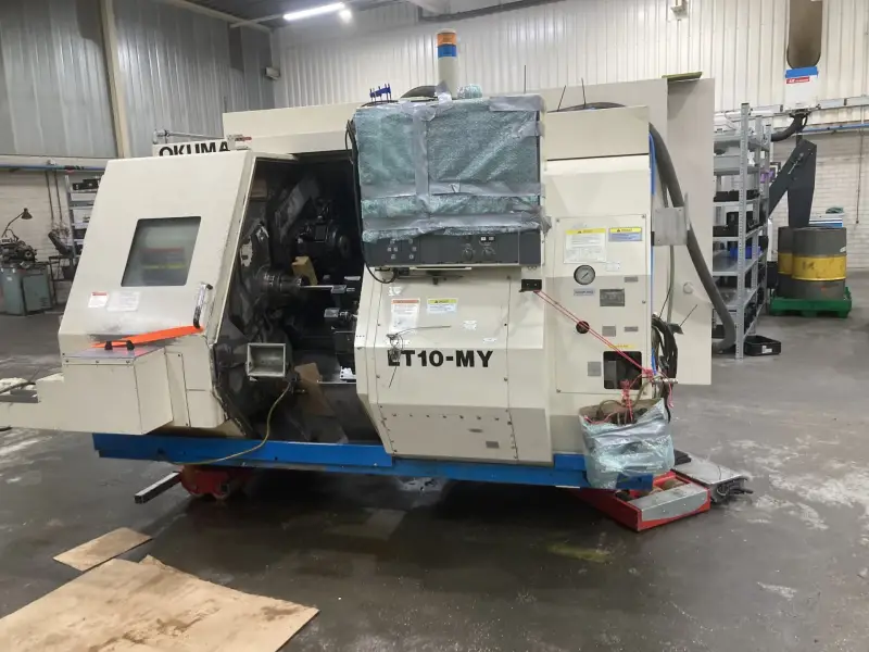 Zeer complete cnc draaimachine; Deze Okuma LT-10MY is voorzien van 2 gelijke spindels, 2 turrets, welke voorzien zijn van aangedreven gereedschappen, waarbij de bovenste turret tevens voorzien is van een Y-as verplaatsing. U ziet de machine hier op een zogenaamde Moover staan. Dit betreft een tankset, waarbij de stuurtank voorzien is van een accupakket!! Met behulp van een afstandsbediening wordt de stuurtank bestuurd en wordt de machine het pand in- of uitgereden. Dit is ideaal , indien er niet veel ruimte is voor de heftruck of wanneer het totaalgewicht van de machine plus heftruck de maximale vloerdruk overschrijden, zoals hier het geval was. Deze cnc draaimachine had nog als bijzonderheid dat hij is voorzien van een Irco 3 meter laadmagazijn type Profimat , maar ook een Irco ontlaadmagazijn type ILS-REX . Kortom een zeer productieve cel!! De machine is inmiddels geinstalleerd en staat alweer te draaien en maakt complete assen welke in 1 keer kant en klaar van de machine af komen!
