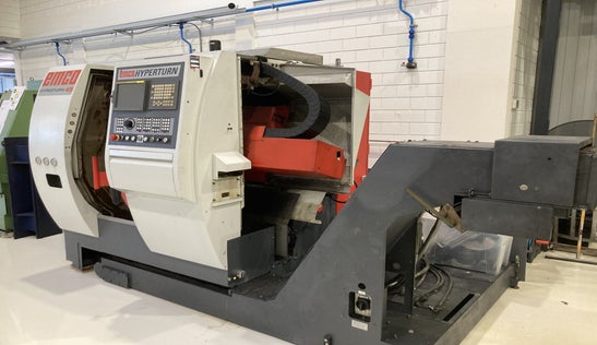 Die Emco Hyperturn 45 CNC Drehmaschine ist ein hochproduktives CNC Drehzentrum mit Haupt- und Gegenspindel für die Komplettbearbeitung in einer Aufspannung. Die Maschine ist mit einer zuverlässigen Fanuc 18i-TB Steuerung ausgestattet und eignet sich ideal für Serienfertigung und Präzisionsteile.