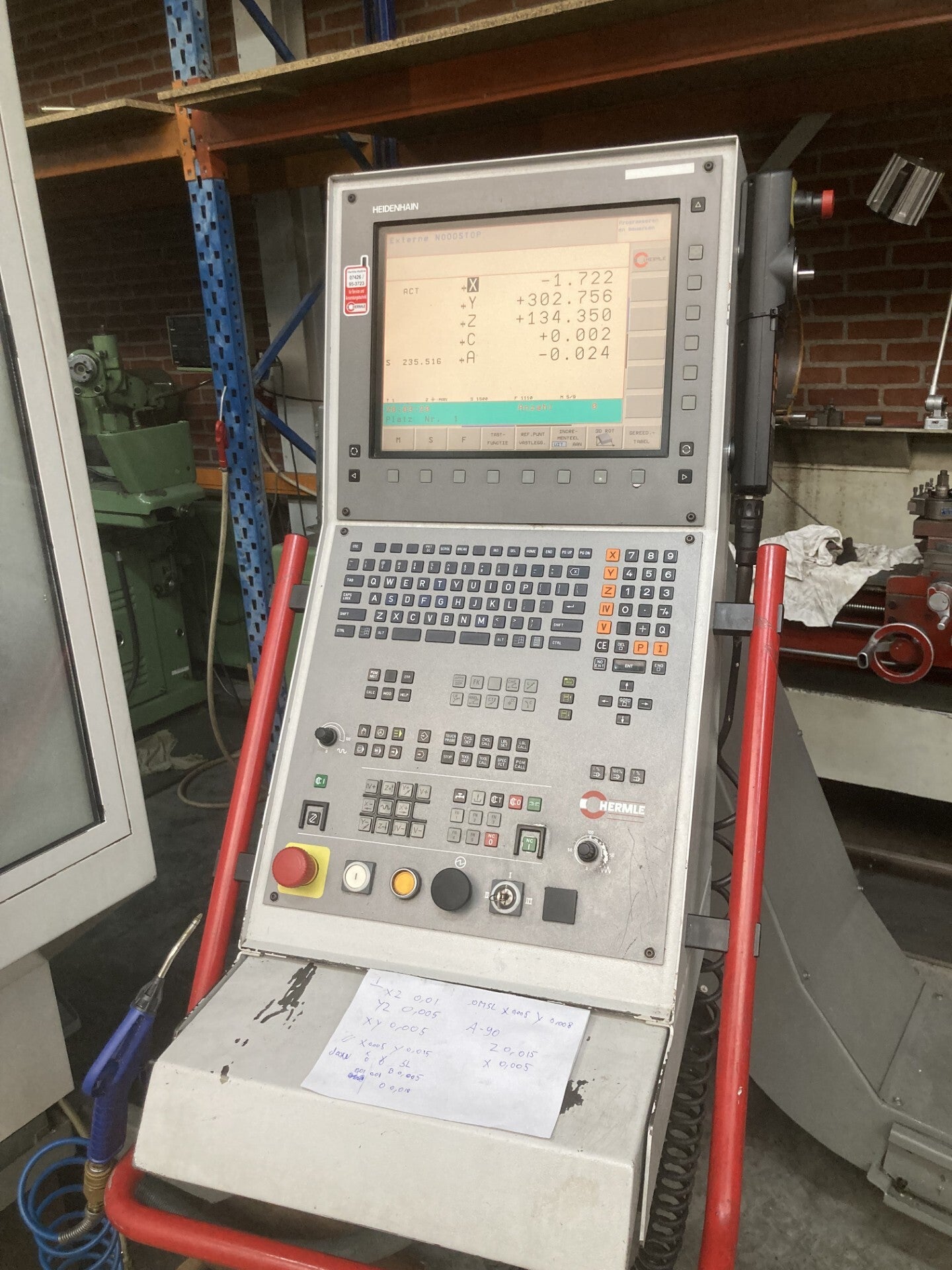 Te koop aangeboden; Hermle 5-assig bewerkingscentrum type C 800U (5-assen simultaan) uitgevoerd met een Heidenhain i TNC 530i besturing. De machine verkeert in een goede staat en is uit voorraad leverbaar, tussentijdse verkoop voorbehouden. De machine heeft een tafelgrootte van Ø 630 mm. De X-, Y- en Z-as verplaatsing bedraagt 800 x 600 x 500 mm. De machine beschikt verder over een maximaal spindeltoerental van 16.000 omw./min, koeling door de spil met een maximale druk van 40 Bar. Ook inbegrepen is een taster van Heidenhain, een Stark nulpunt spansysteem en een spanentransporteur.