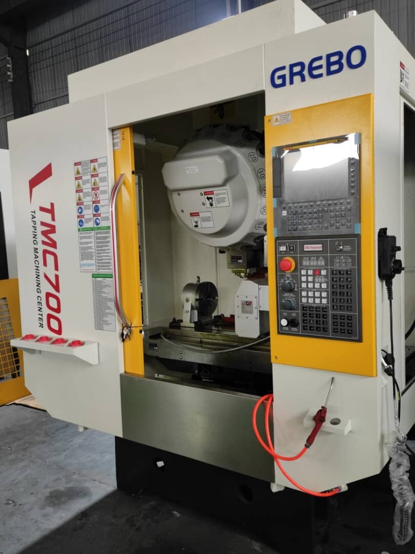 Onderweg op de boot!; Enkele Grebo boor-, frees en tapmachines type TMC-700. Zeer productief boor-, frees en tapcentrum type TMC-700 uitgevoerd met de allernieuwste Fanuc besturing. De verplaatsingen bedragen 700 x 400 x 300 mm. De tafelgrootte bedraagt 800 x 420 mm. Het maximale toerental bedraagt 12.000 omw/min (direct aangedreven spil) Voorzien van 21 gereedschapposities (turret type). Het eigen machinegewicht bedraagt 3.200 kg. Binnenkort binnen!!!, tussentijdse verkoop voorbehouden tegen een zeer competitieve prijs .